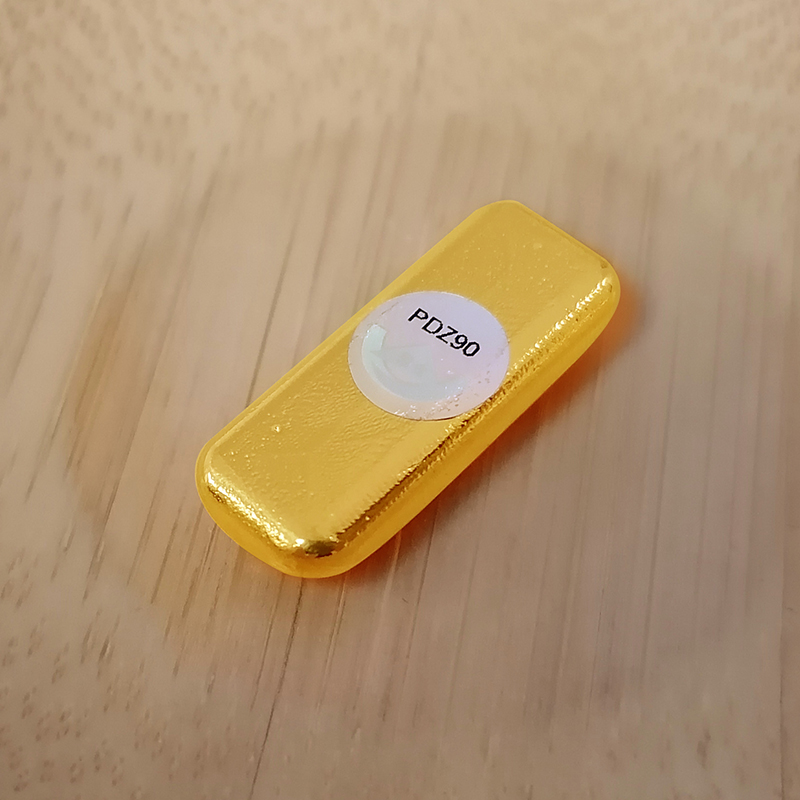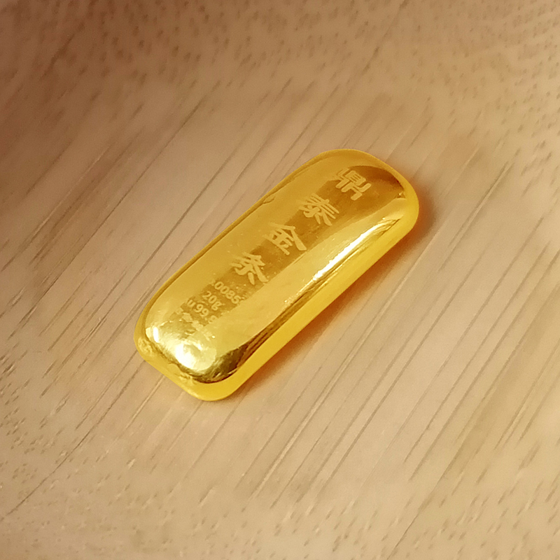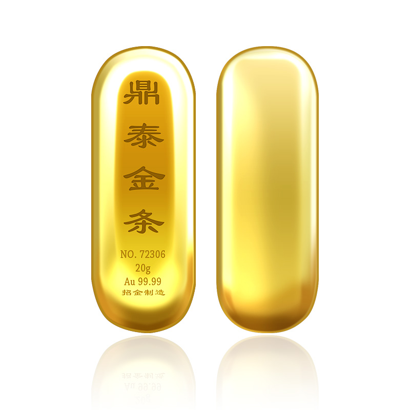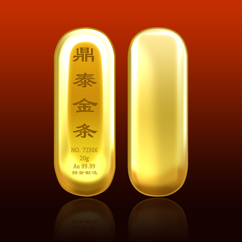 出品品牌为“鼎泰金”,经浇铸工艺制作,外观圆润,色度饱满,全流程严格按照上海黄金交易所标准制造完成,支持购回。金条正面标注成色、克重、编号等标识。