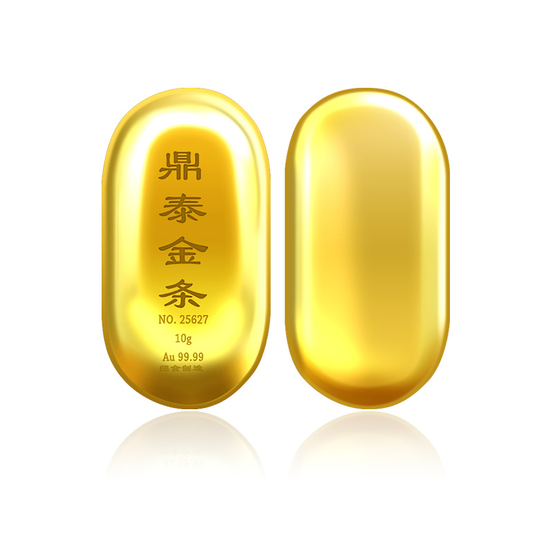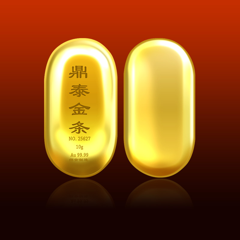 出品品牌为“鼎泰金”,经浇铸工艺制作,外观圆润,色度饱满,全流程严格按照上海黄金交易所标准制造完成,支持购回。金条正面标注成色、克重、编号等标识。