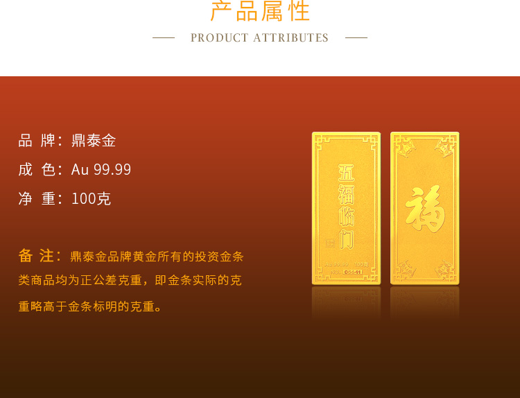 五福临门系列100克投资金条