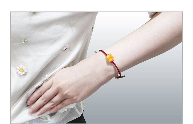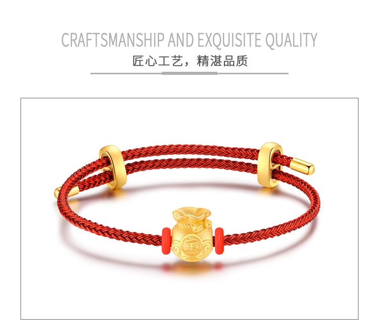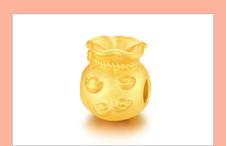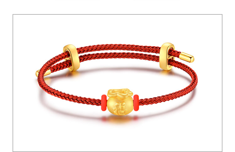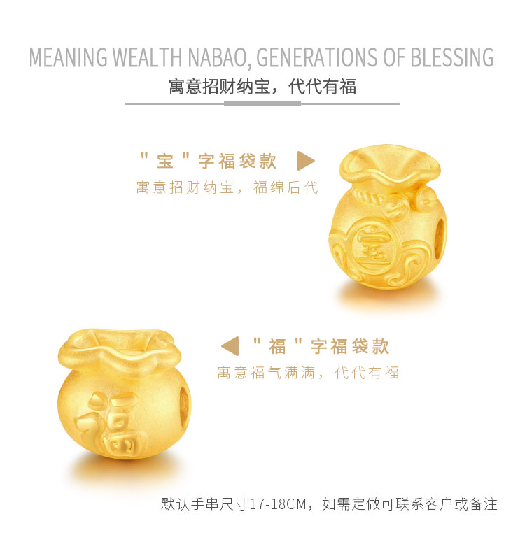 黄金转运珠佩戴时,随着肢体动作不停转动,寓意为佩戴者时时转运,使这好运随身。