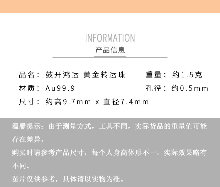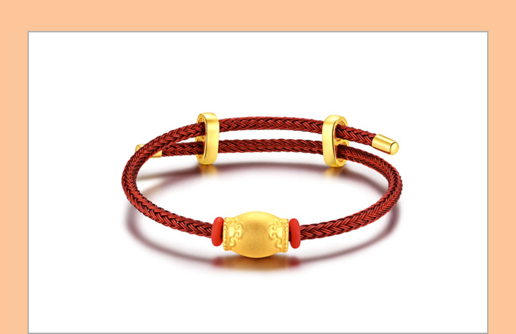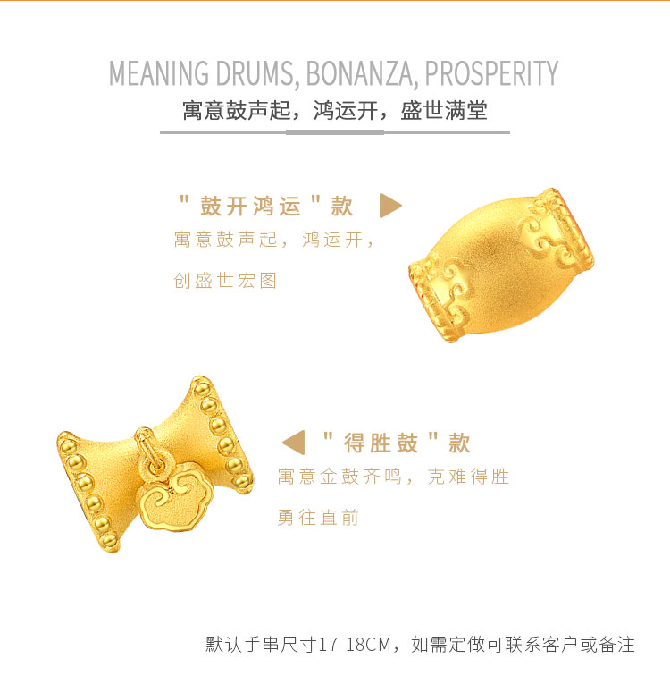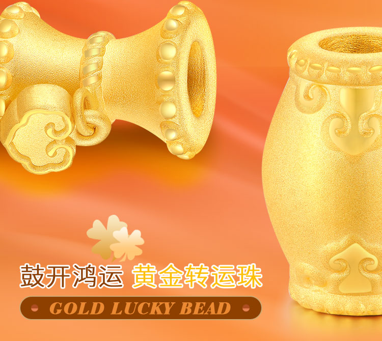 黄金转运珠佩戴时,随着肢体动作不停转动,寓意为佩戴者时时转运,使这好运随身。