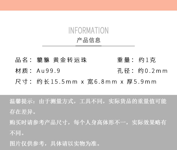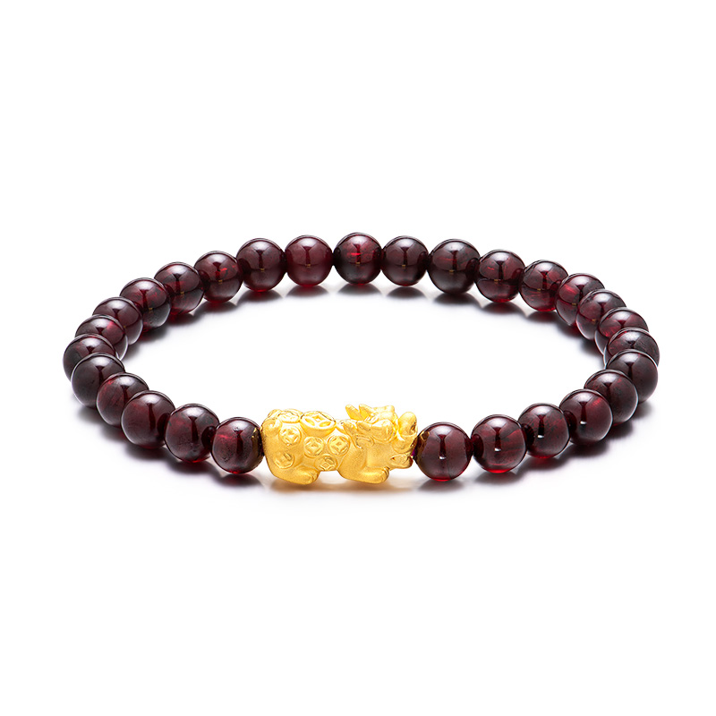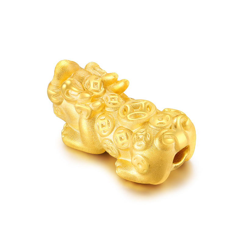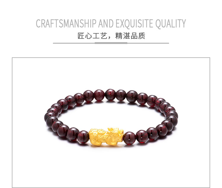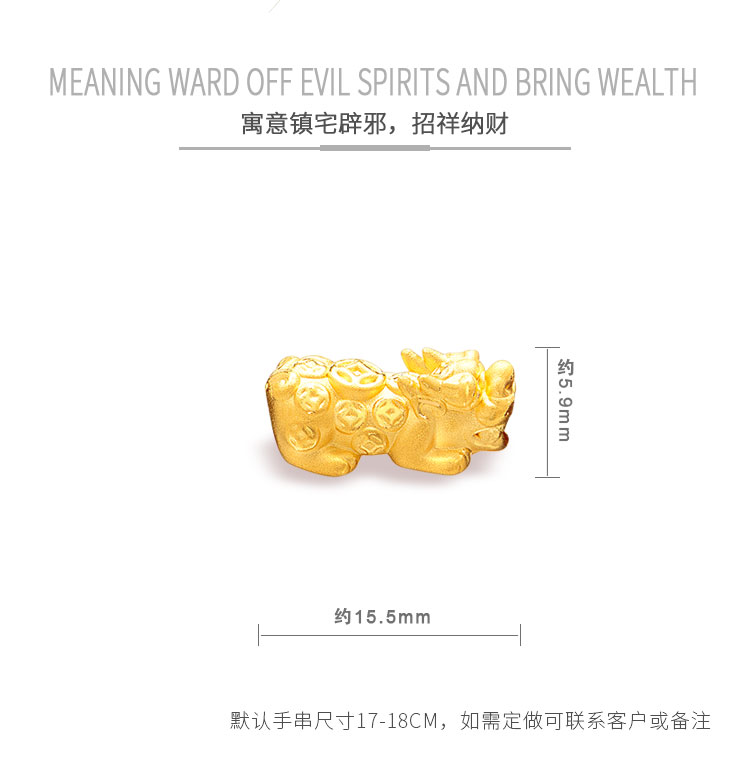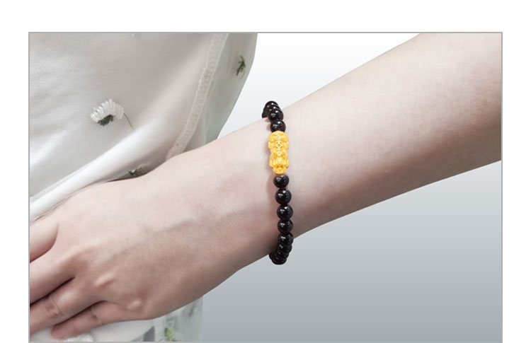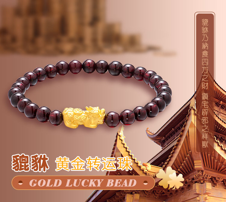 黄金转运珠佩戴时,随着肢体动作不停转动,寓意为佩戴者时时转运,使这好运随身。