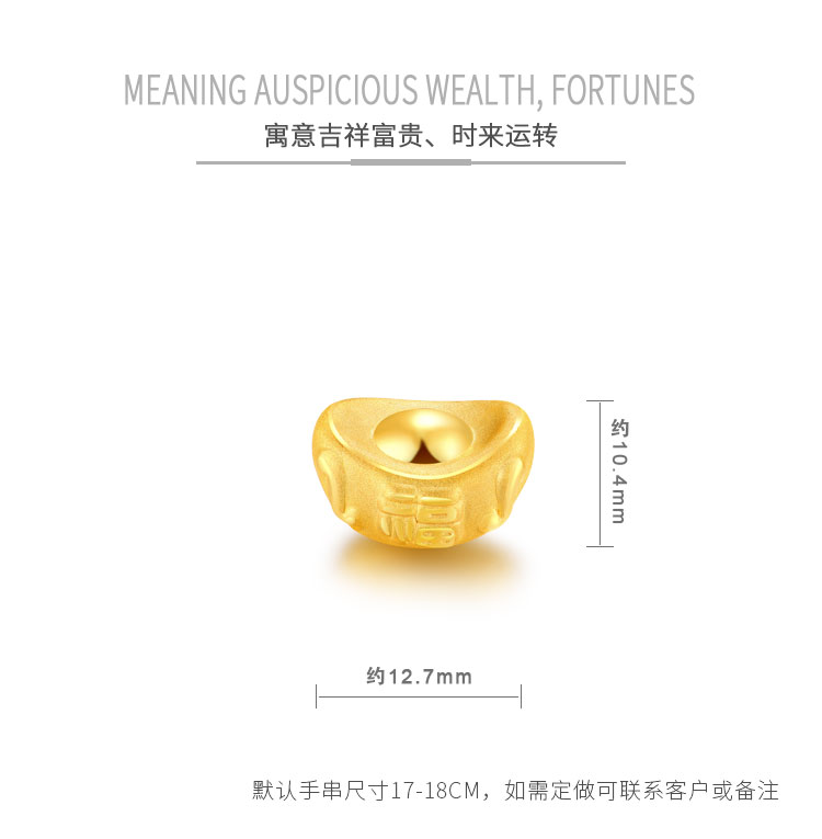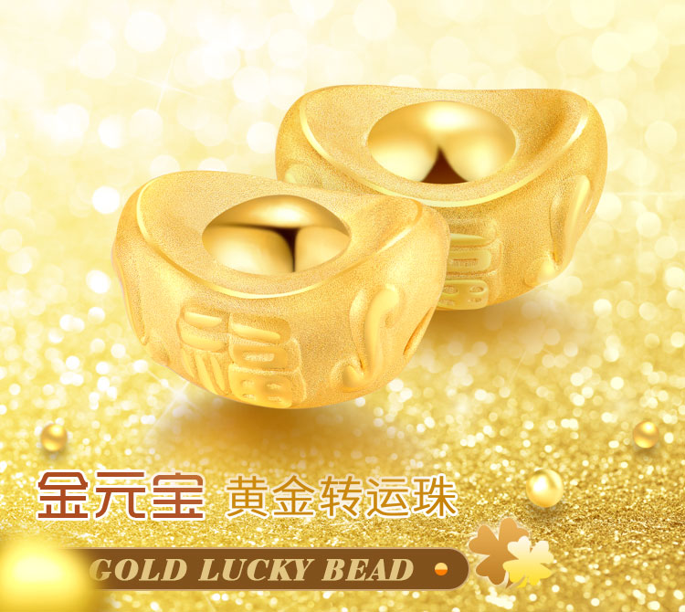 黄金转运珠佩戴时,随着肢体动作不停转动,寓意为佩戴者时时转运,使这好运随身。