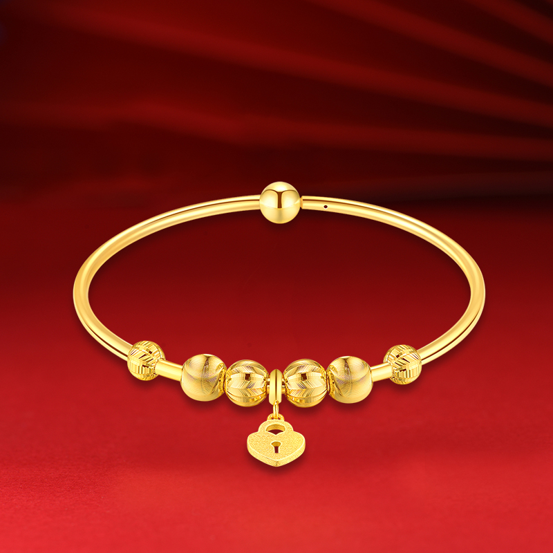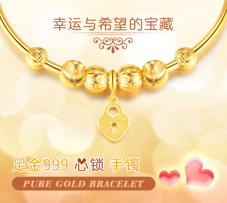 黄金手镯“祈福”“心钥”“心锁”系列。猫眼珠系列手镯寓意一把钥匙开一把锁,只为自己的爱人打开内心的美好祝愿,并为心爱的人祈求平安幸福。